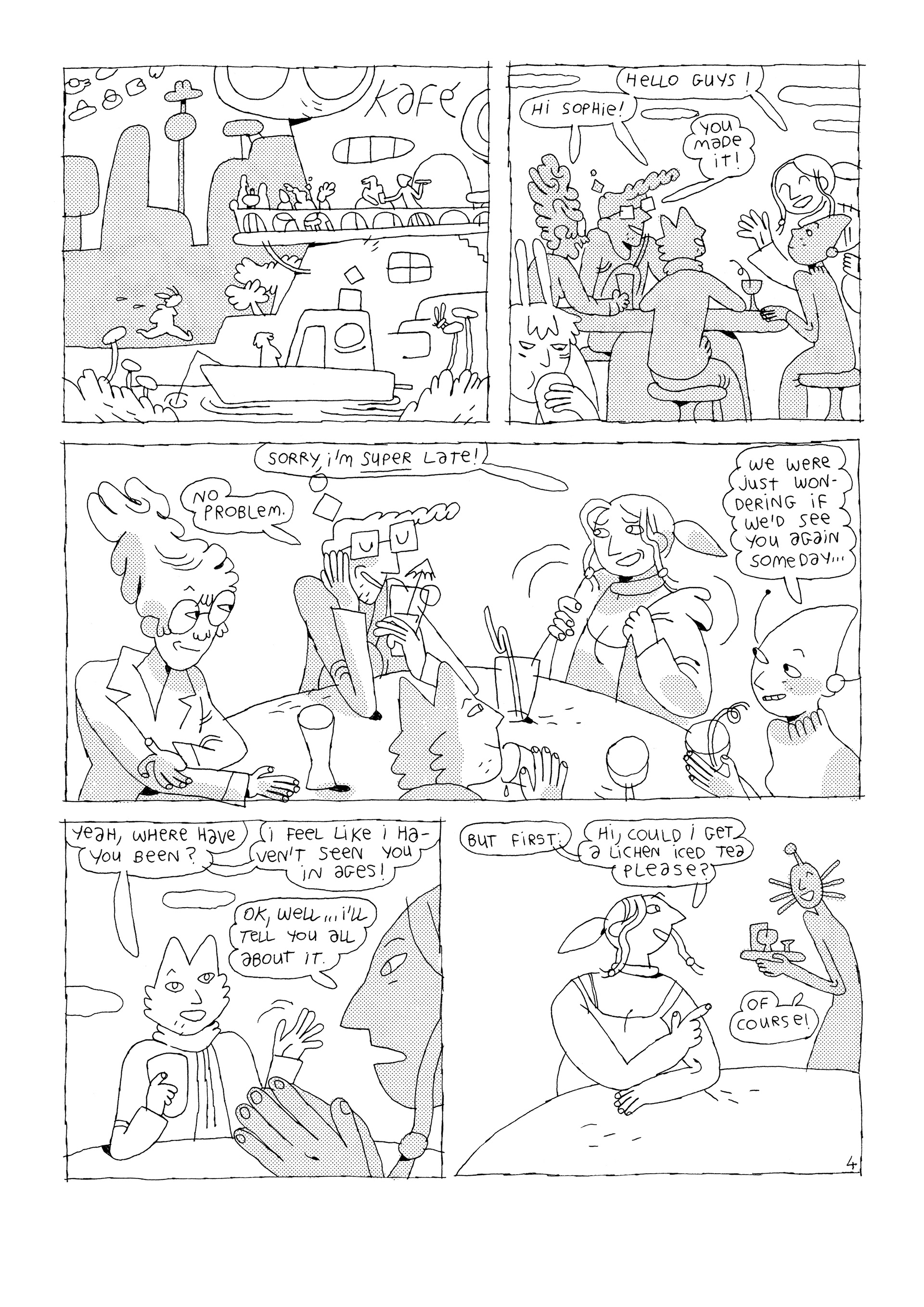 Quelques centaines d’années dans le futur, Sophie, Staphylin, Peramel, Nèfle et Leotia sont cinq ami-e-s dans la vingtaine. Ils se retrouvent à un café et racontent chacun-e une étrange histoire d’amour qui leur est arrivé récemment…